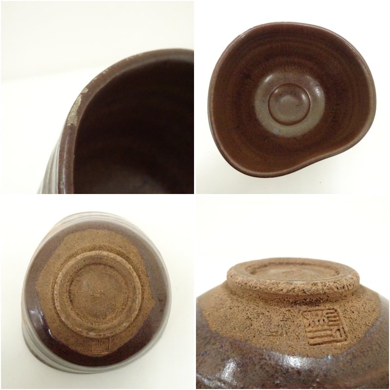 寺田美山造 御題「車」鉄釉沓茶碗 [01-250814c-043a]