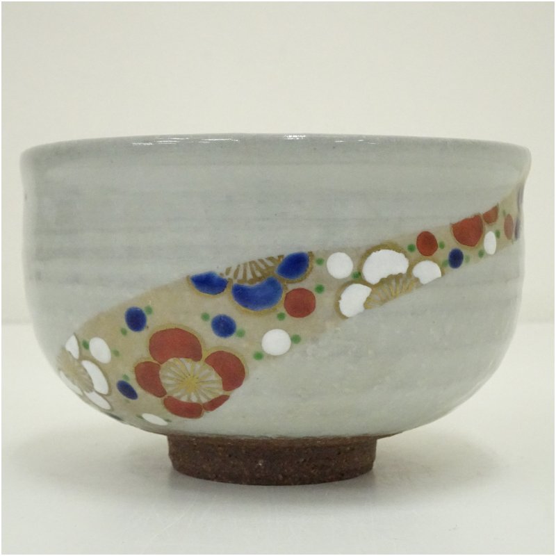 京焼 中村与平造 梅吹流し文茶碗 [01-250814c-050a]