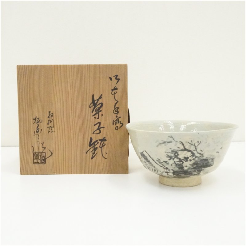 紀州焼 初代 寒川栖豊造 御本手絵菓子鉢(共箱) [13-250605c-037a]