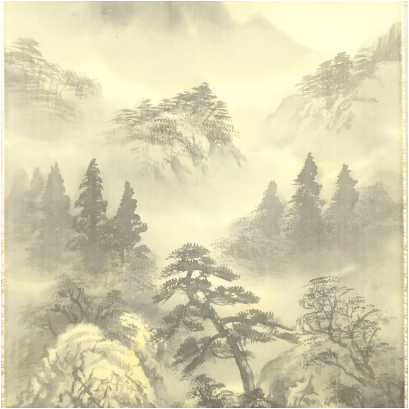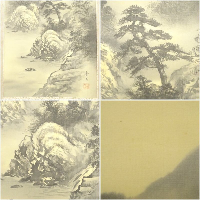 香月筆 水墨山水 肉筆絹本掛軸(共箱) [01-250815c-009a]