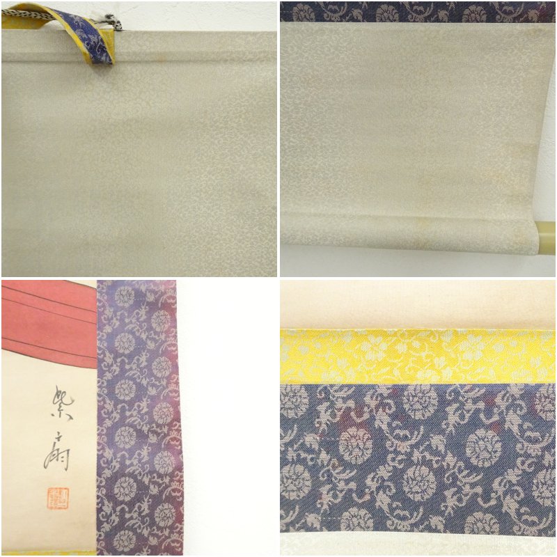 紫扇筆 美人図 肉筆絹本掛軸(保護箱) [01-250815c-010a]