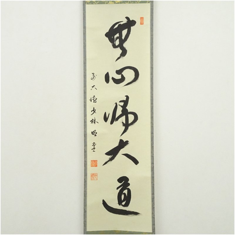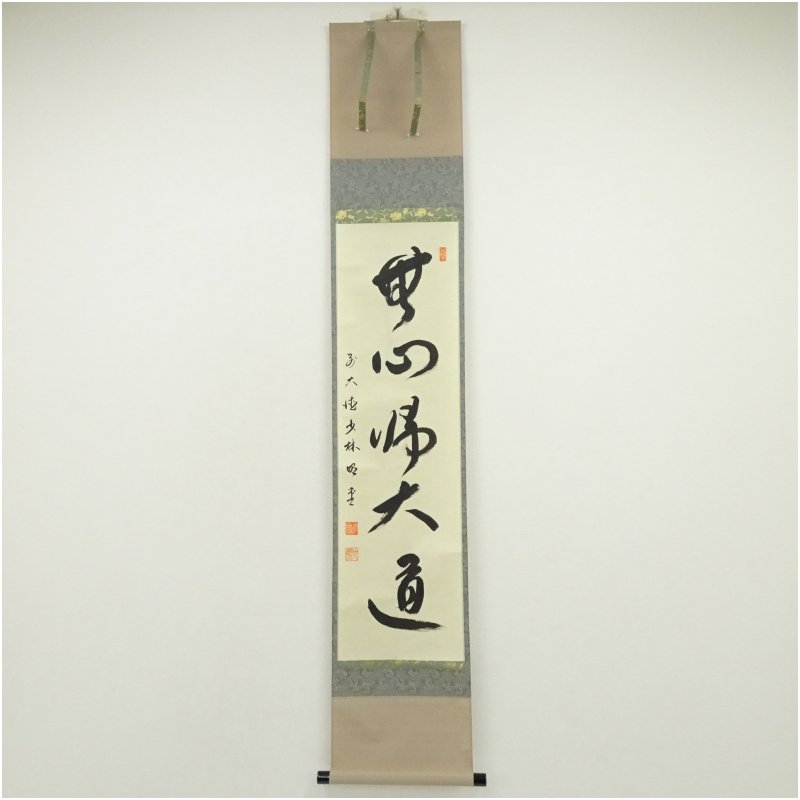 前大徳 横井明堂筆 「無心帰大道」一行書 肉筆紙本掛軸(共箱) [01-250815c-035a]