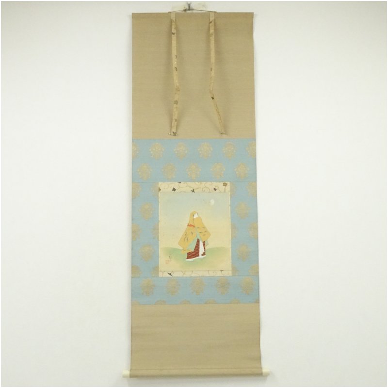 生田花朝筆 ひるの月 肉筆絹本掛軸(共箱・二重箱)
