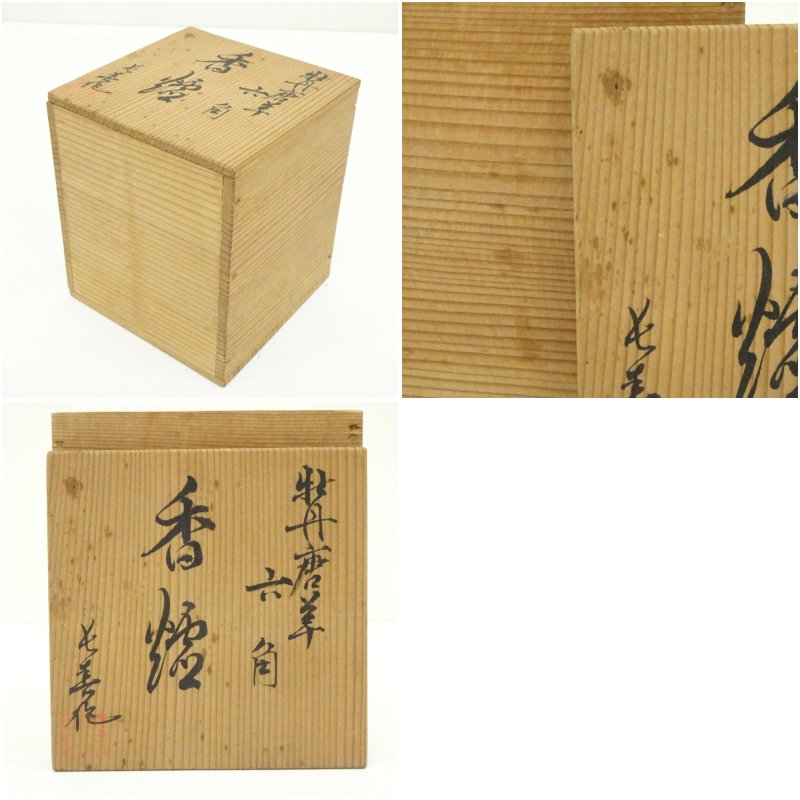鍋島焼 小笠原長春造 牡丹唐草六角香炉(共箱)