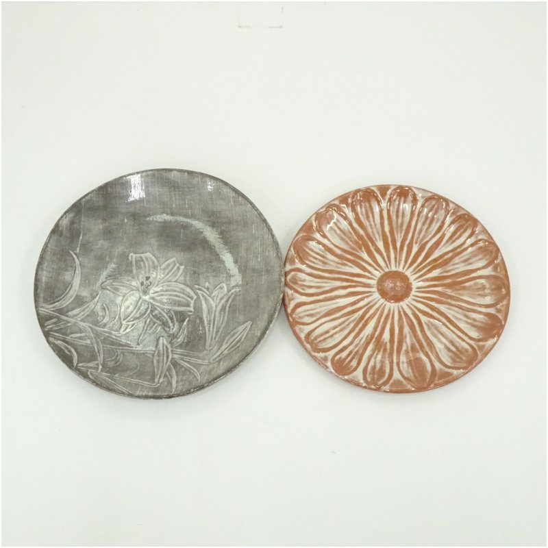 吉向焼 百合文皿・菊文皿 [13-250819b-038a]