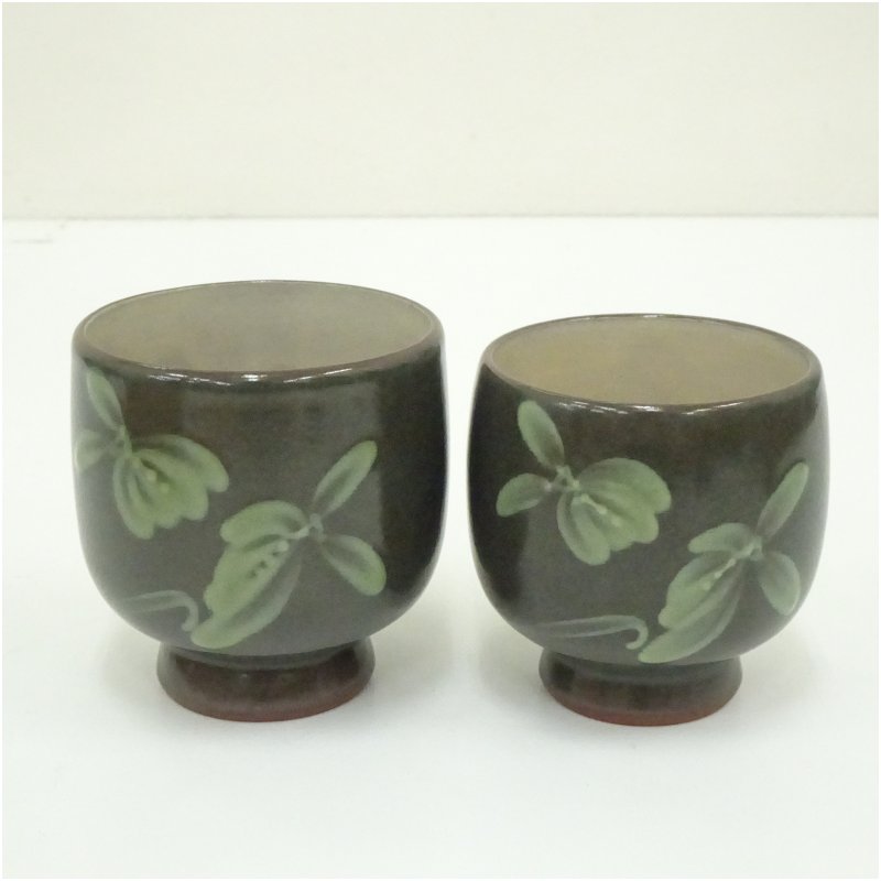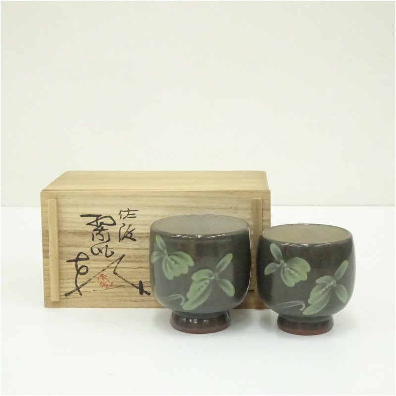 佐渡無名異焼 小平窯 三浦小平二造 夫婦湯呑(共箱) [13-250819b-041a]