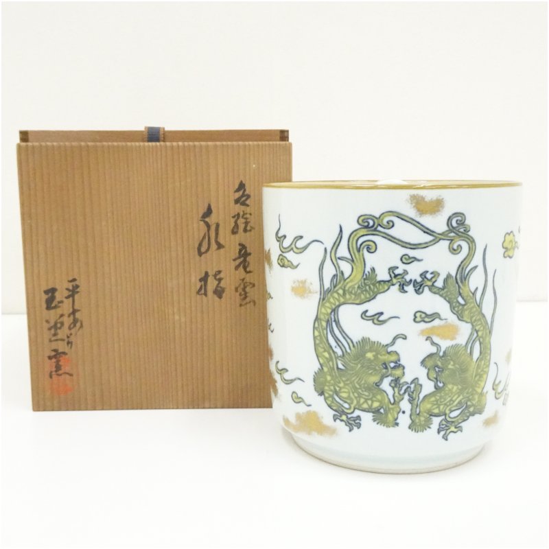 京焼 玉堂窯造 色絵竜雲水指(共箱)