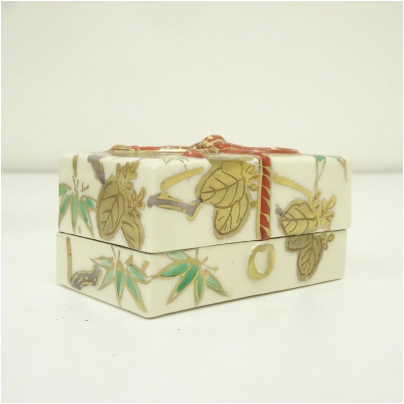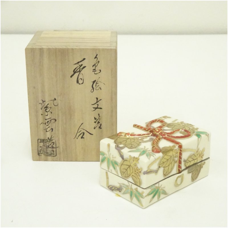 京焼 橋本紫雲造 色絵文筥香合(共箱) [01-250819b-071a]