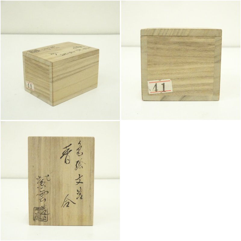 京焼 橋本紫雲造 色絵文筥香合(共箱)