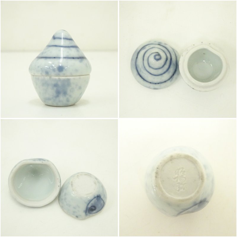 京焼 高野昭阿弥造 染付立唄香合(共箱) [01-250819b-095a]