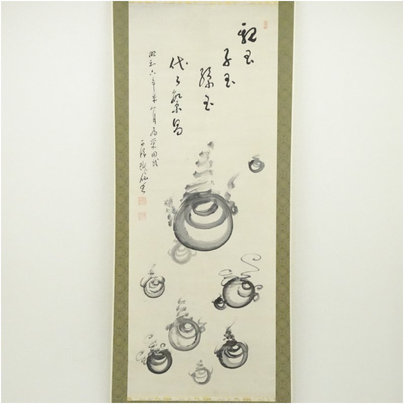 永平寺 高階瓏仙筆 宝珠画賛 肉筆紙本掛軸(箱付) [14-250819c-003b]