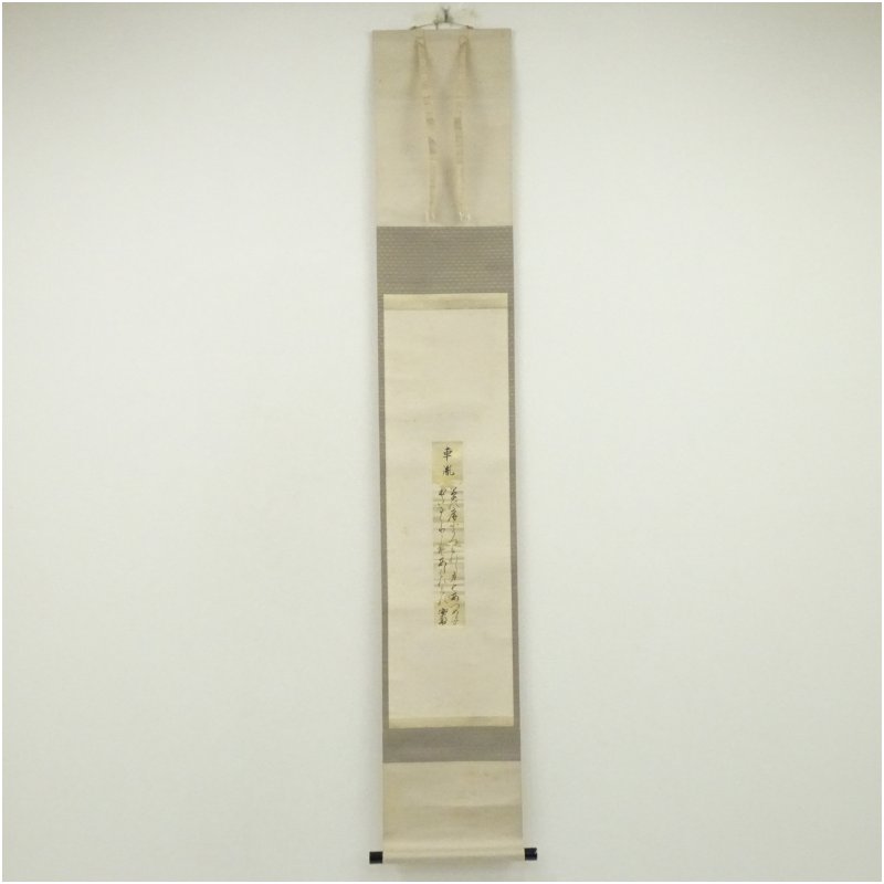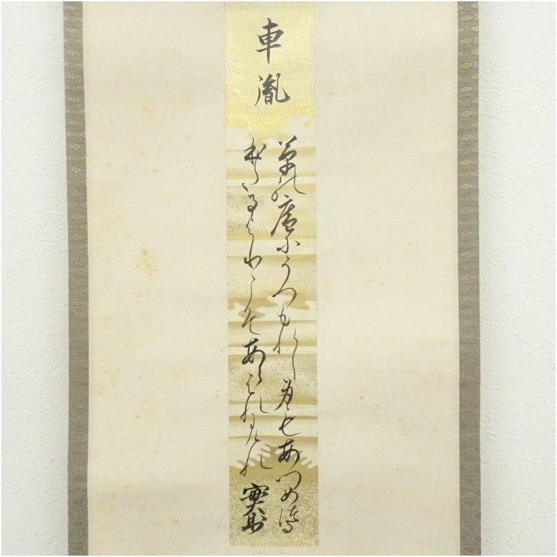 徳大寺實則筆 車胤和歌 短冊 肉筆紙本掛軸(保護箱) [14-250819c-007a]