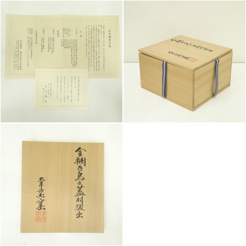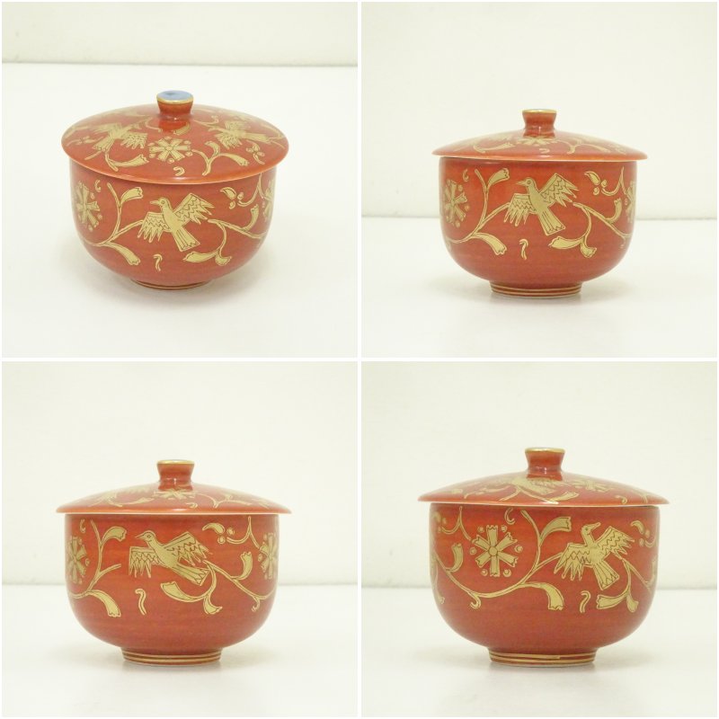 幸兵衛窯造 金襴手鳥文蓋付汲出碗5客(共箱)