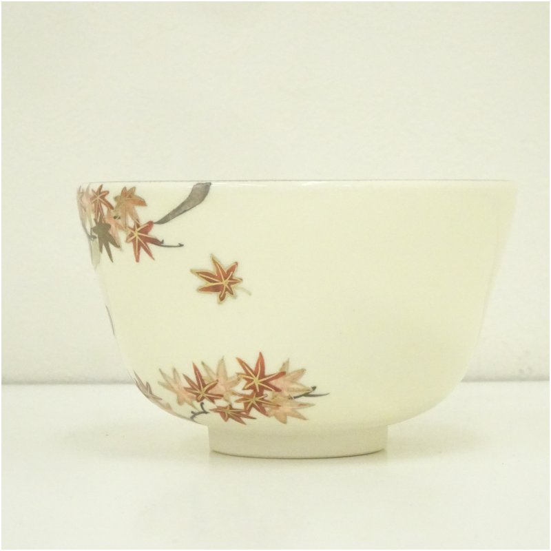 京焼 橋本紫雲造 色絵紅葉流文茶碗(共箱)