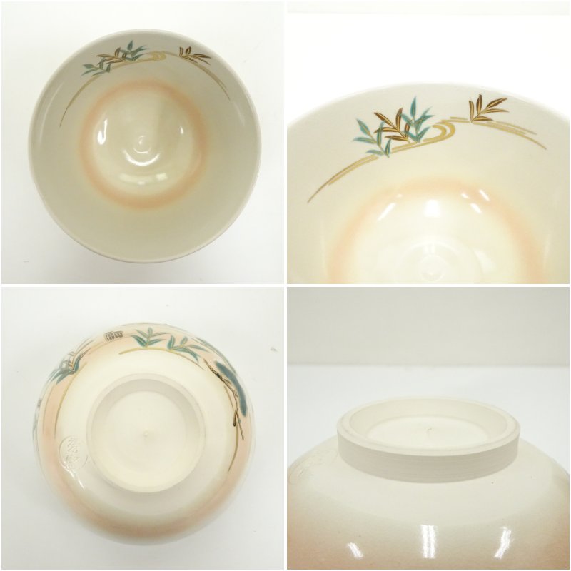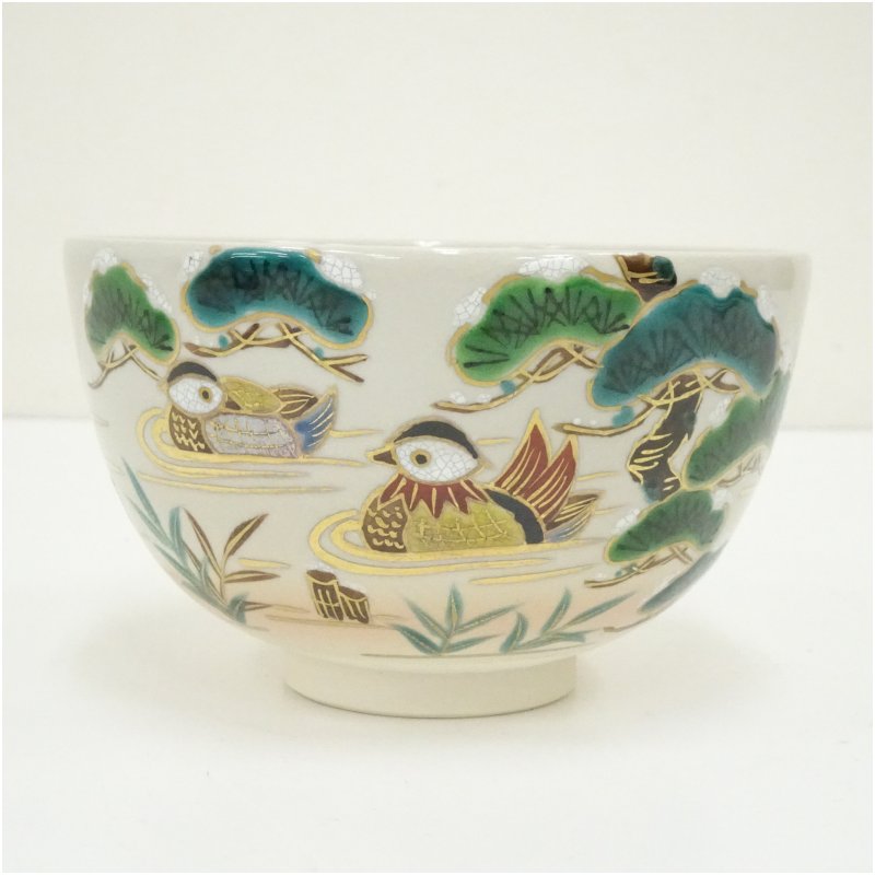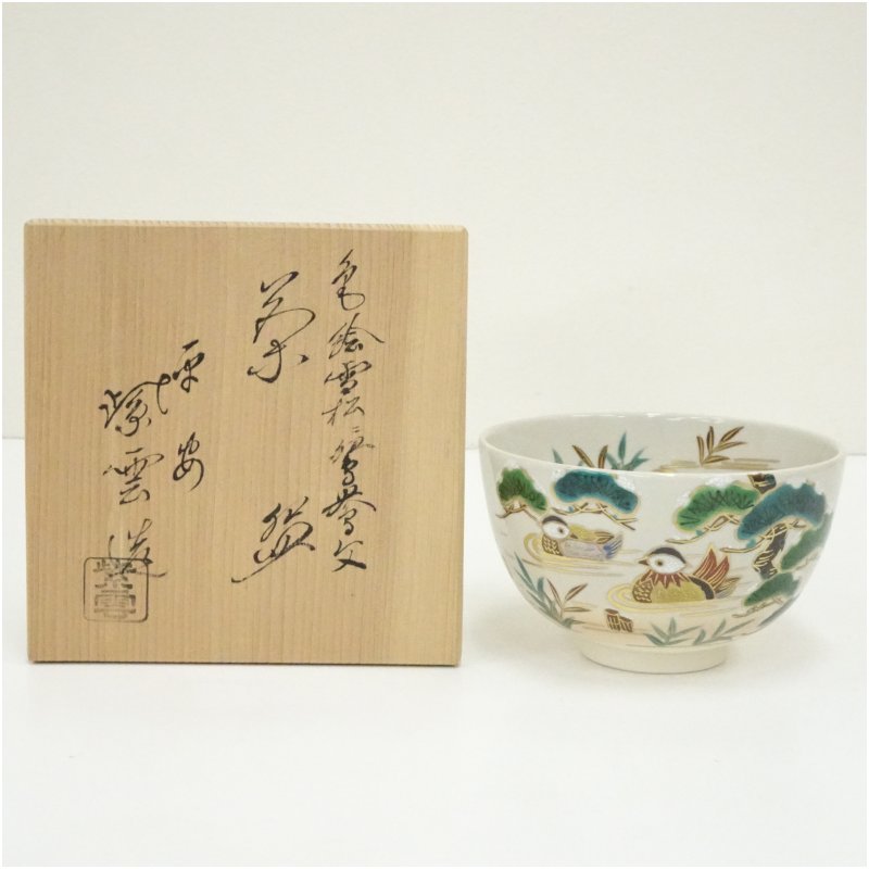 京焼 橋本紫雲造 雪松に鴛鴦文茶碗(共箱) [09-250820c-022a]