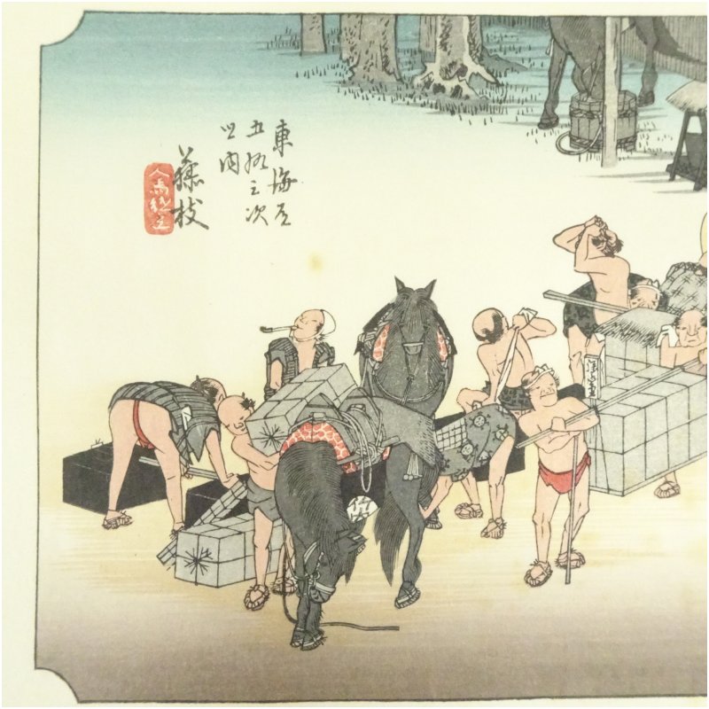 歌川広重 東海道五十三次 「藤枝」 手摺浮世絵版画