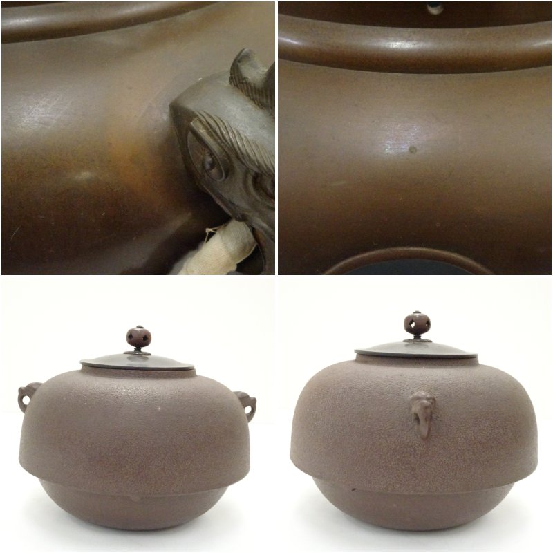 釜師 佐藤浄清造 唐銅鬼面風炉 丸切合釜添(電熱器・釜鐶付)(共箱)