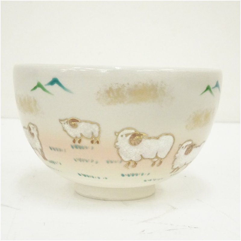 京焼 上山善峰造 色絵牧羊図茶碗 [01-250820c-062a]