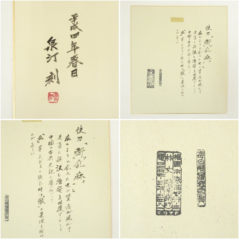林丈雄筆 「断乱麻」ほか 肉筆色紙2枚セット [13-250820b-007a]
