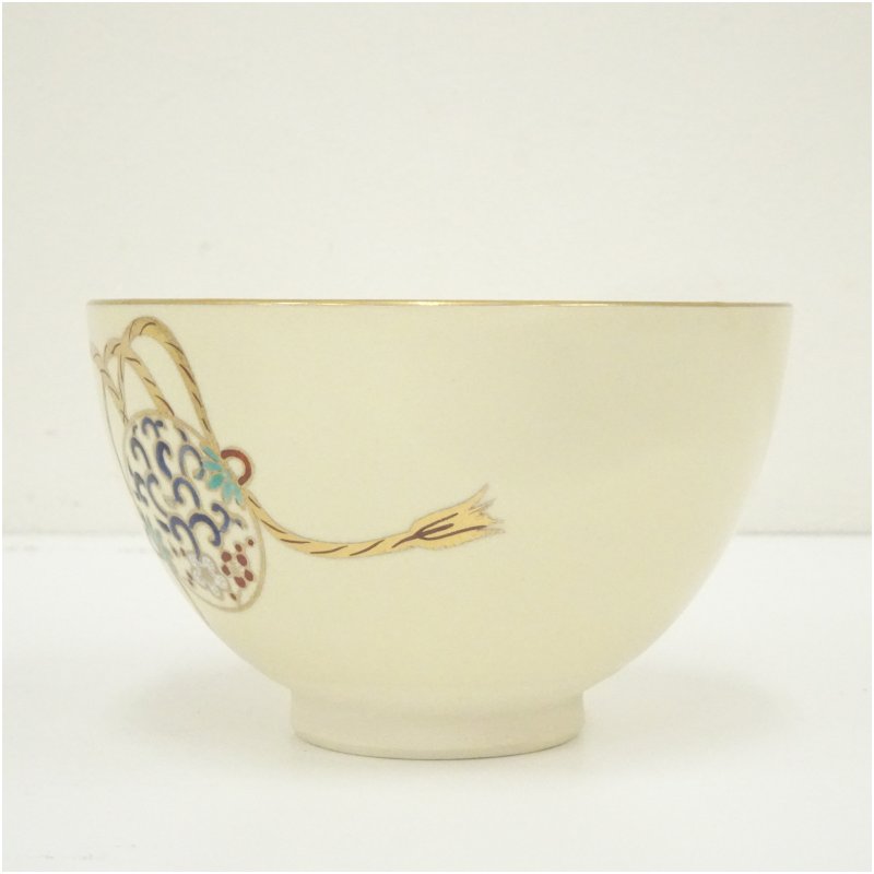 京焼 小栗龍靖造 色絵鞠茶碗(箱付) [01-250820a-026a]