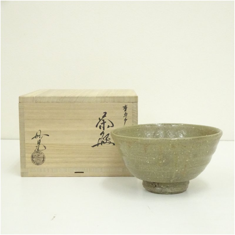京焼 今岡妙見造 青井戸落葉写茶碗(共箱)