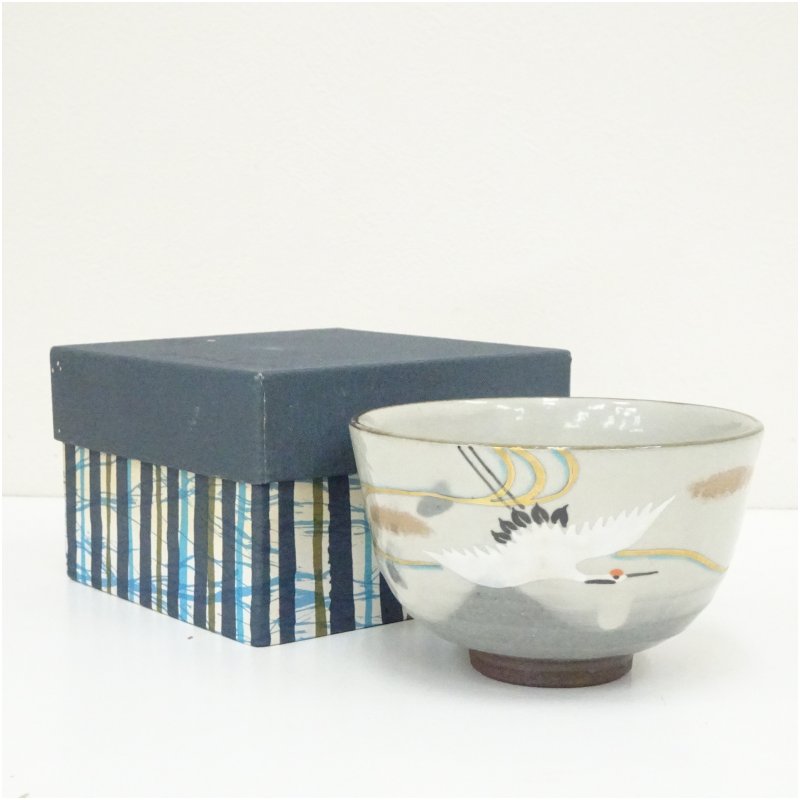 作家物 色絵雲鶴茶碗(箱付) [01-250820a-042a]