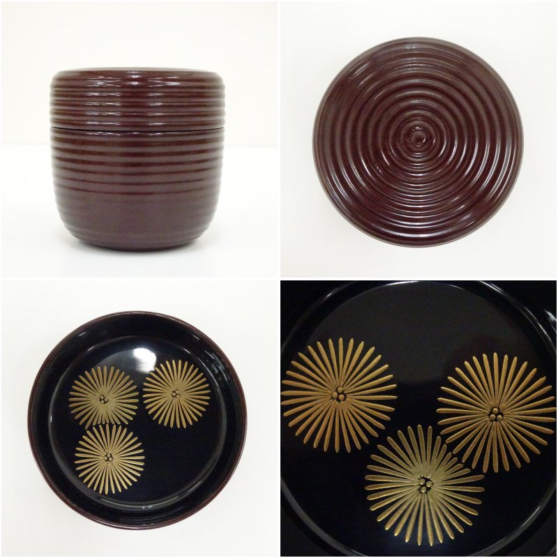 熊谷秀穂造 溜ろくろ目 蓋裏唐松大棗(共箱) [01-250820a-048a]