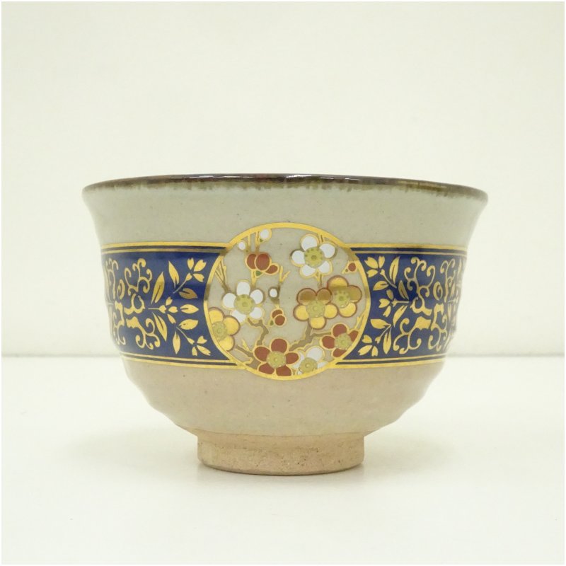 作家物 色絵帯丸紋草花画茶碗(箱付) [01-250821b-009a]