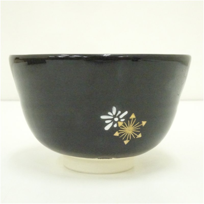 京焼 田中香泉造 黒仁清雪華茶碗(箱付) [01-250821b-035a]