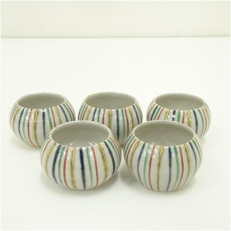 京焼 作家物 麦藁手つぼつぼ5客 [01-250821b-067a]