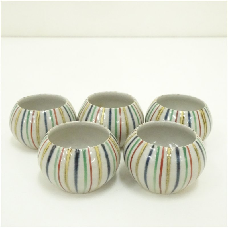 京焼 作家物 麦藁手つぼつぼ5客 [01-250821b-068a]