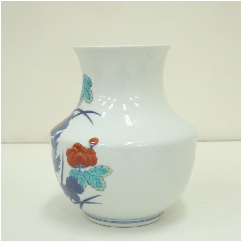 有田焼 十二代 今泉今右衛門造 錦花絵花瓶(共箱) [01-250821b-083a]