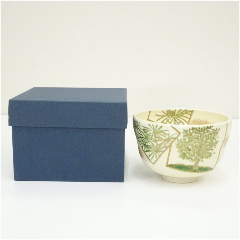 京焼 八木海峰造 色絵松之絵茶碗(箱付) [01-250821c-006a]