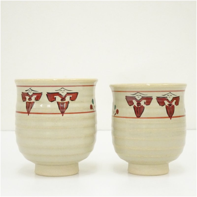 赤膚焼 大塩玉泉造 奈良絵揃湯呑(共箱) [01-250821c-007a]