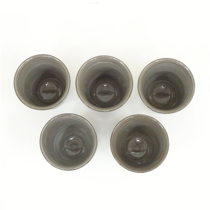 現川焼 豊瑞軒 十三代 横石臥牛造 白鷺文湯呑5客(共箱) [01-250821c-016a]