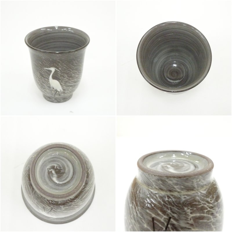 現川焼 豊瑞軒 十三代 横石臥牛造 白鷺文湯呑5客(共箱)