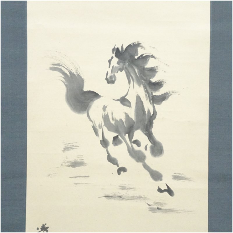 清悦筆 馬 肉筆紙本掛軸 [01-250822c-023a]