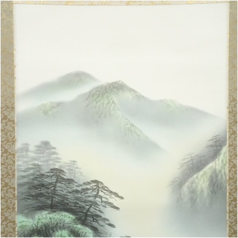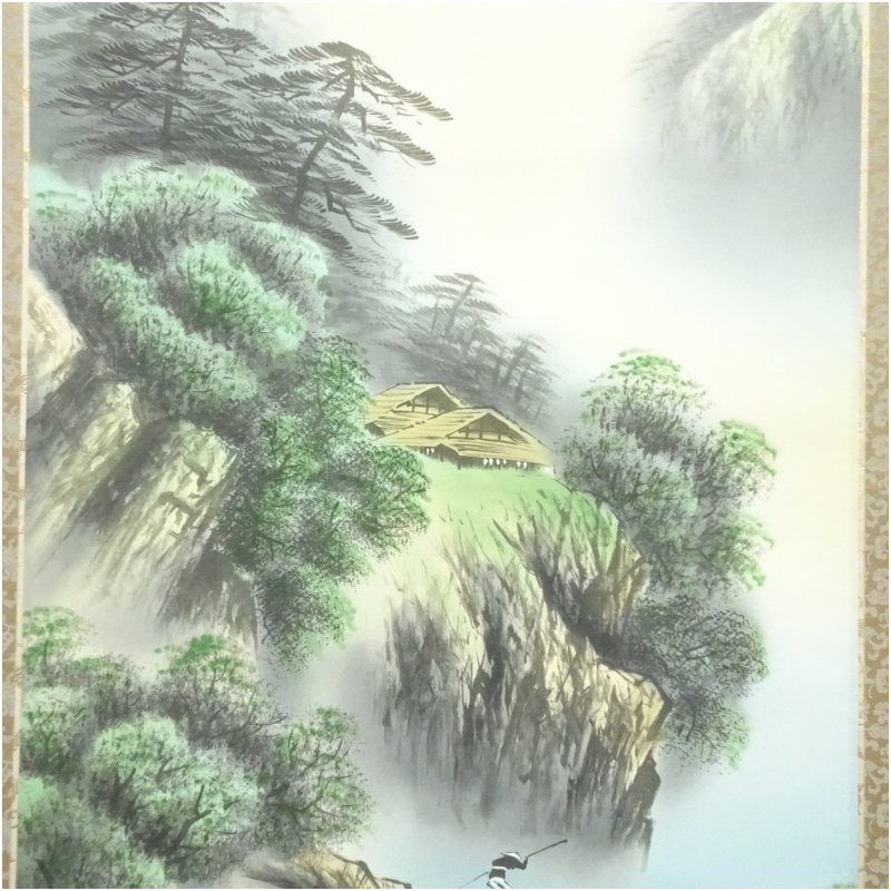 福本美渓筆 彩色山水 肉筆紙本掛軸(共箱) [01-250822c-029a]