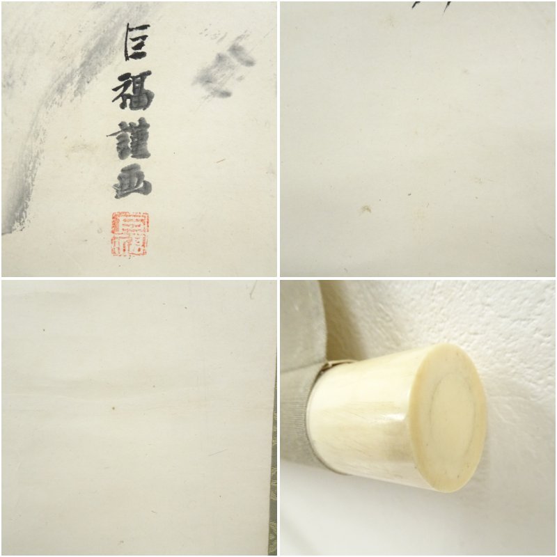 山本玄峰賛書 巨福画 白衣観音 肉筆紙本掛軸(箱付) [14-250822c-041a]