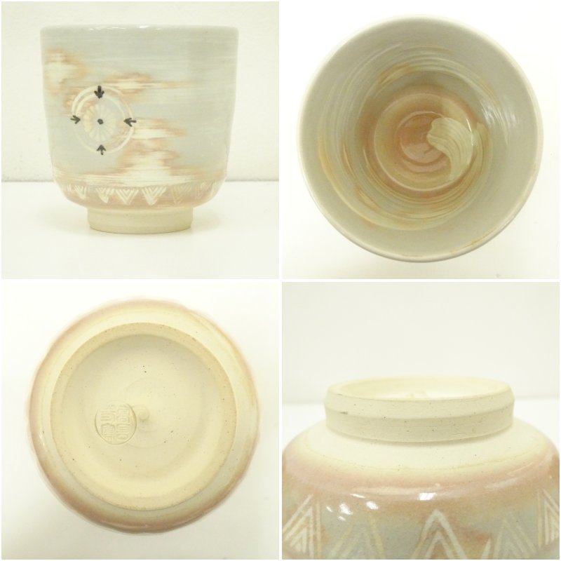 京焼 高台寺窯造 森里陶楽 御本狂言袴筒茶碗(共箱) [09-250822b-019a]