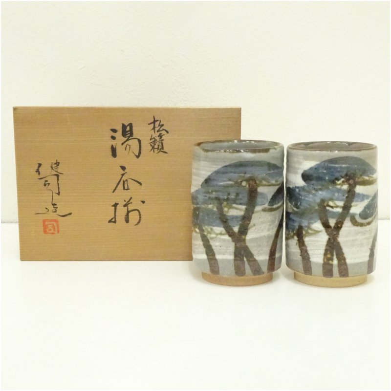 京焼 鈴木健司造 松籟湯呑揃(共箱) [09-250822b-025a]