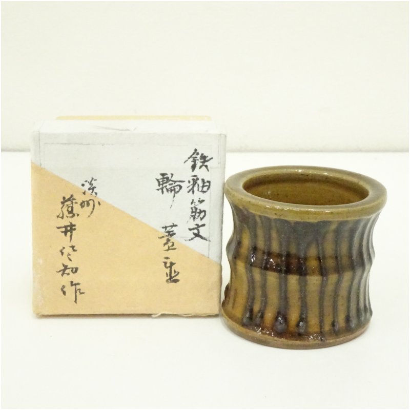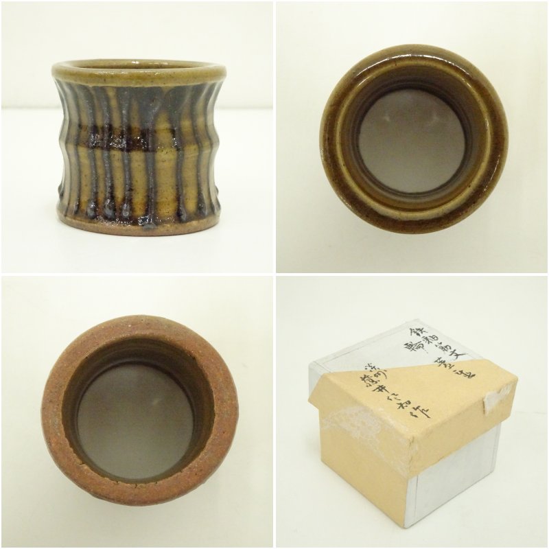 鉄釉筋文蓋置(箱付)
