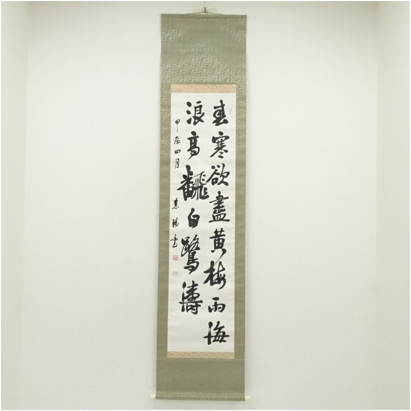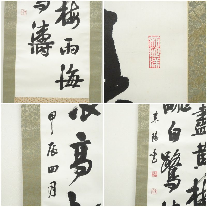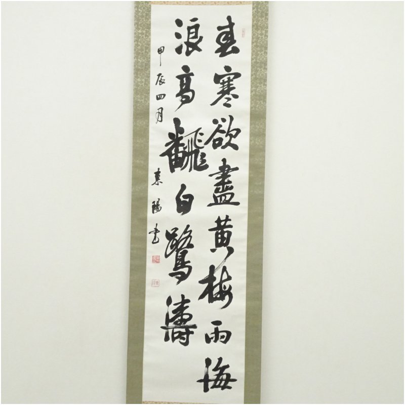 東陽筆 「海浪高飜」漢詩二行書 肉筆紙本掛軸(共箱) [01-250825c-011a]