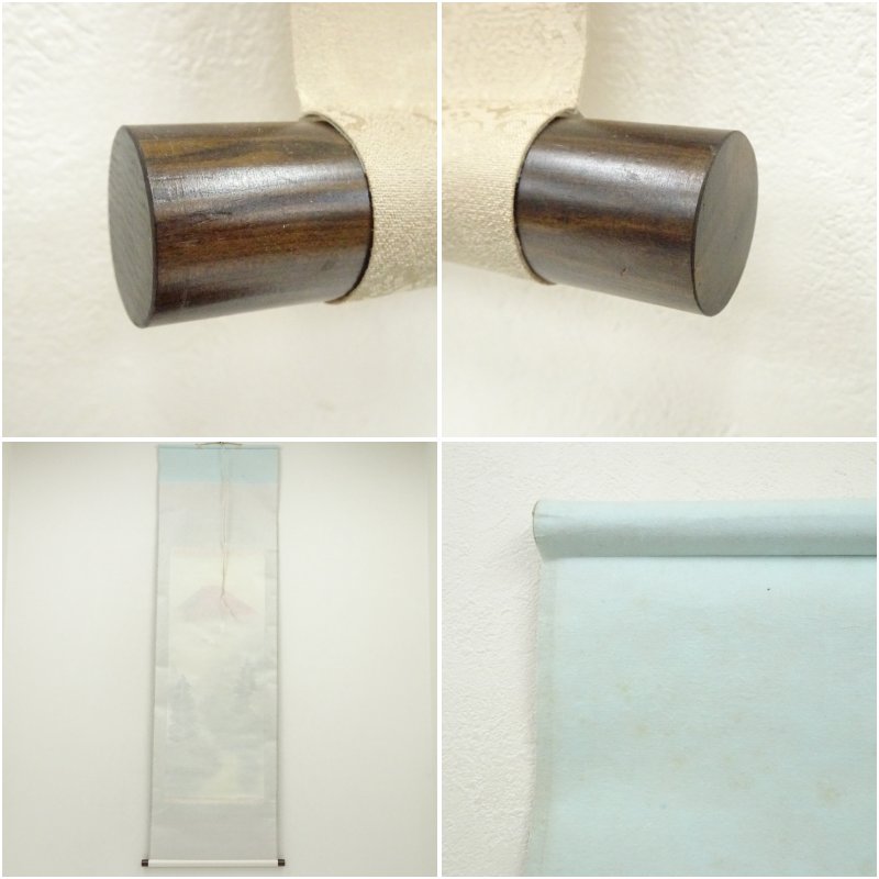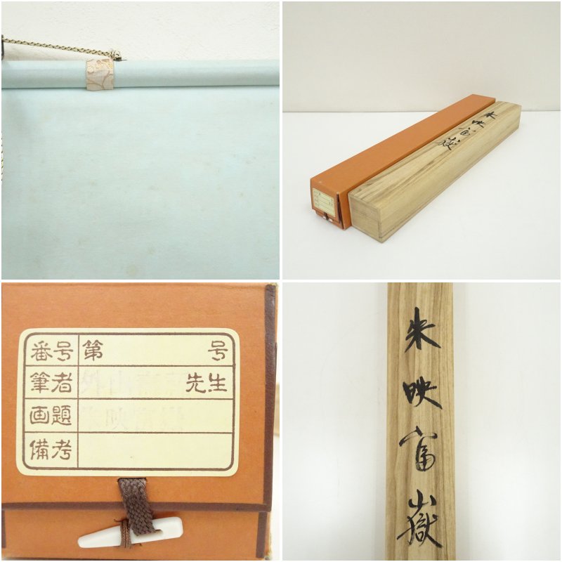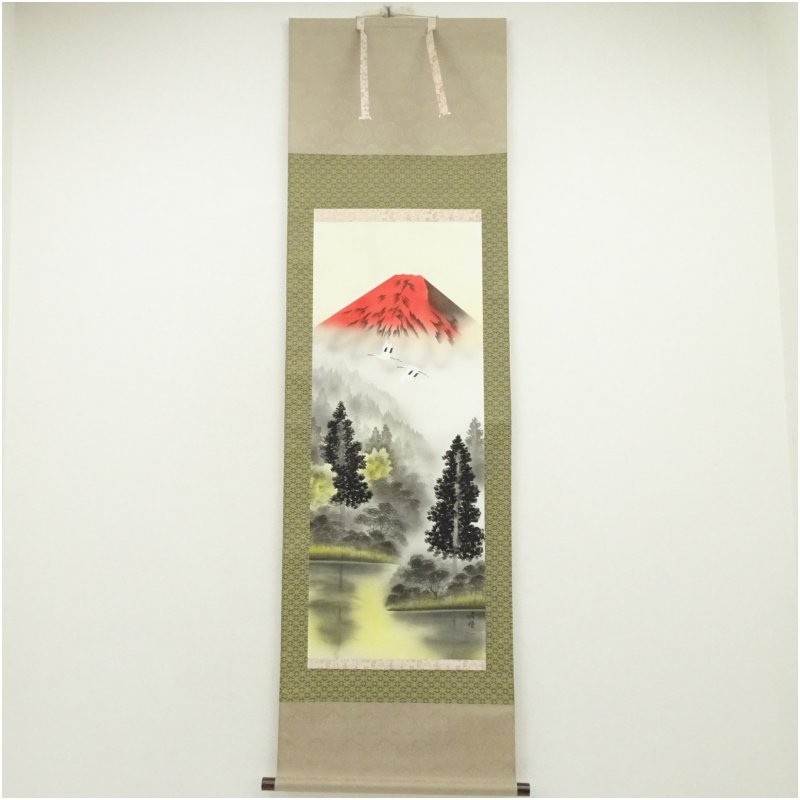 寿福筆 朱映富岳 赤富士 肉筆絹本掛軸(共箱) [01-250825c-012a]