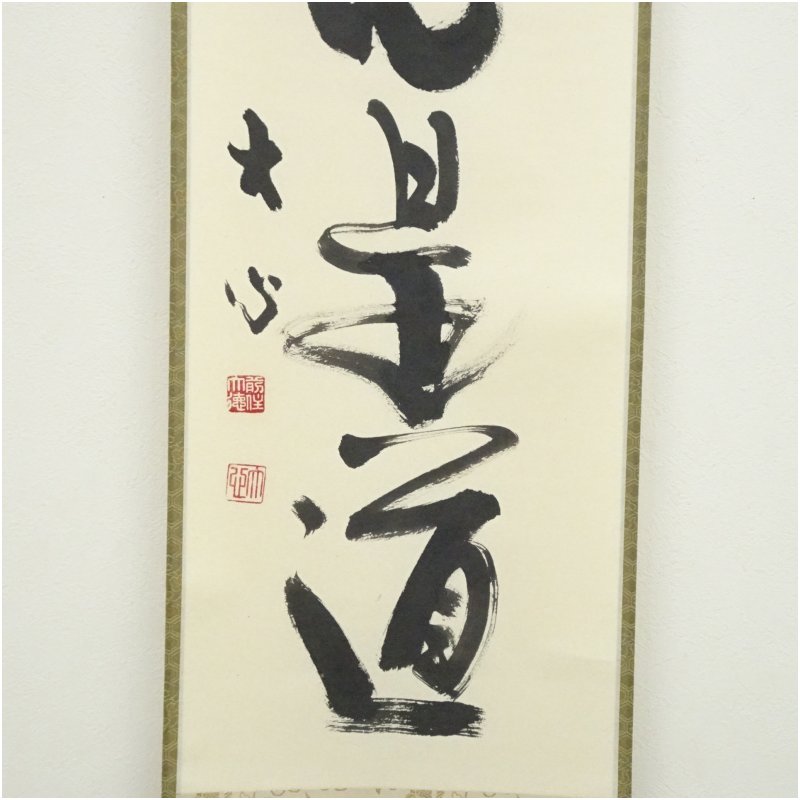 前大徳 小室大心筆 「平常心是道」一行書 肉筆紙本掛軸(共箱) [01-250825c-014a]