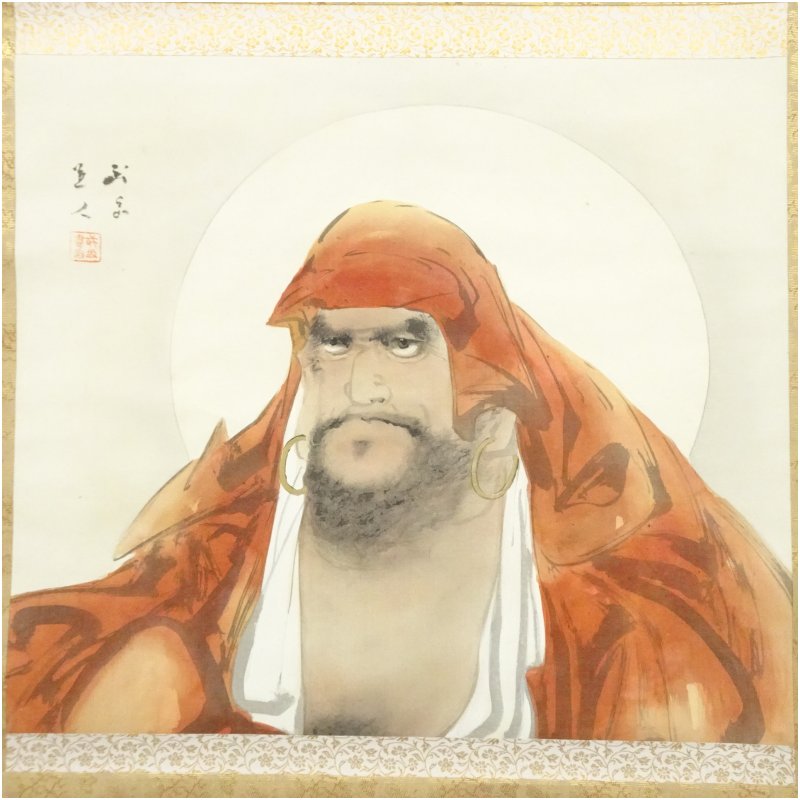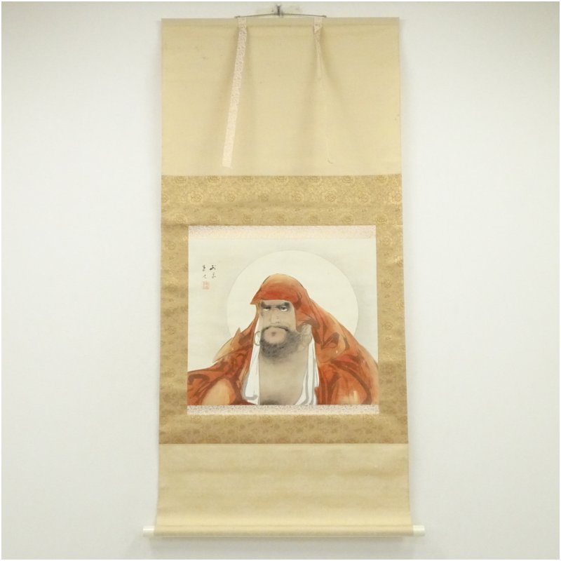 長谷川武岳筆 達磨図 肉筆絹本掛軸(共箱) [01-250825c-018a]