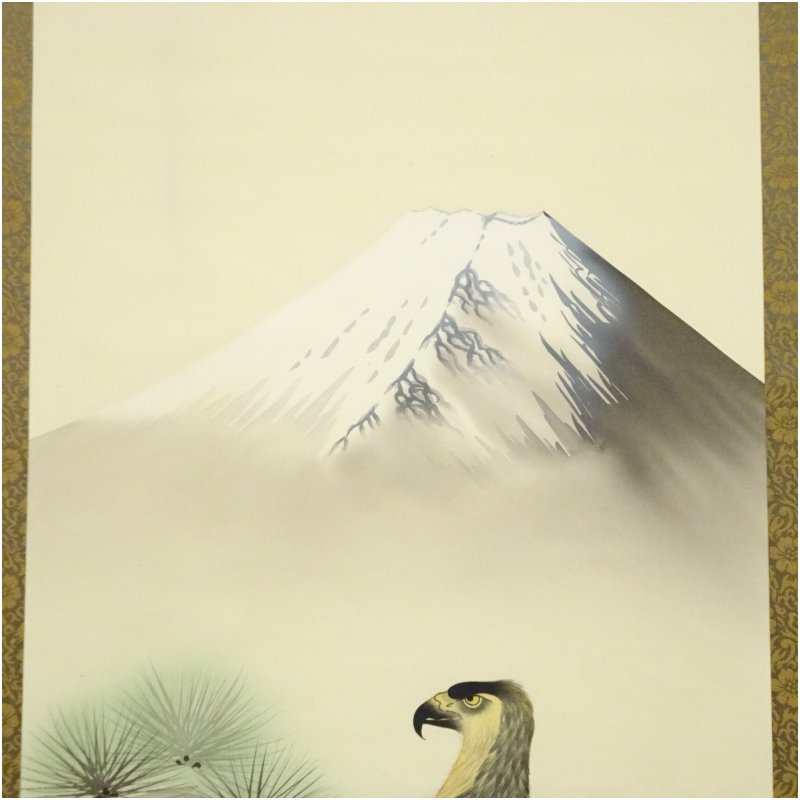 悠堂筆 一富士二鷹三茄子 肉筆絹本掛軸(共箱) [01-250826c-001a]