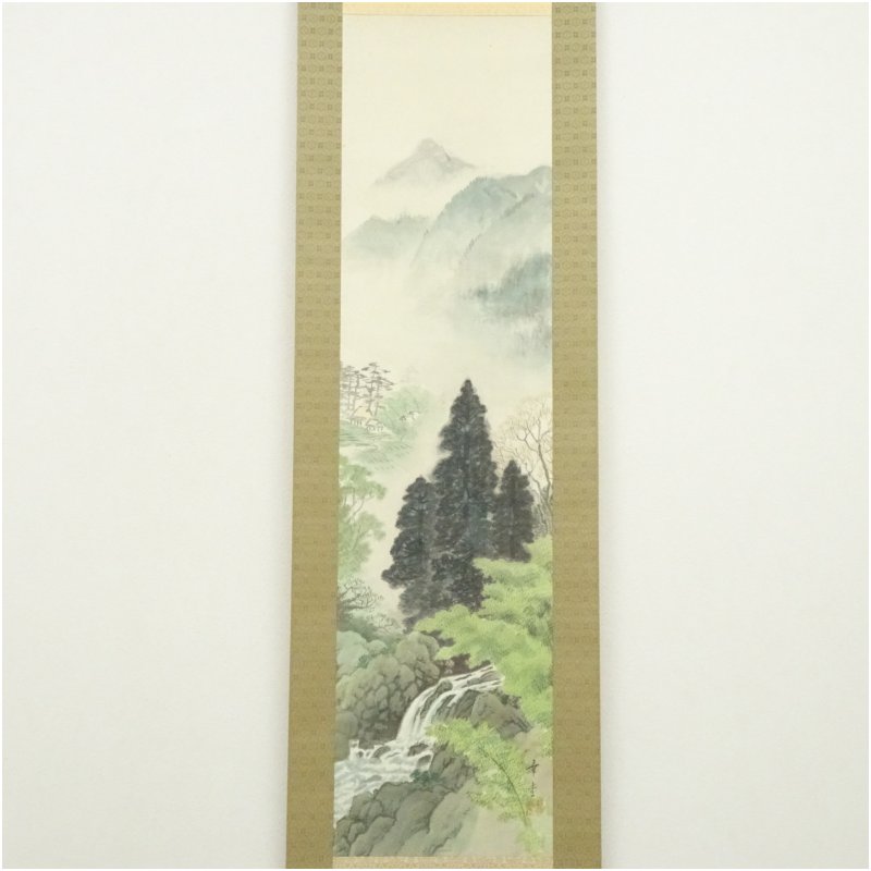 内田幸堂筆 彩色山水 肉筆絹本掛軸(共箱) [01-250826c-011a]
