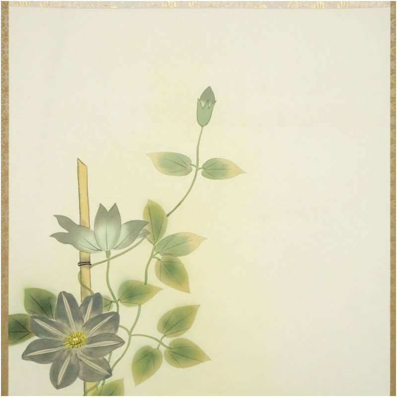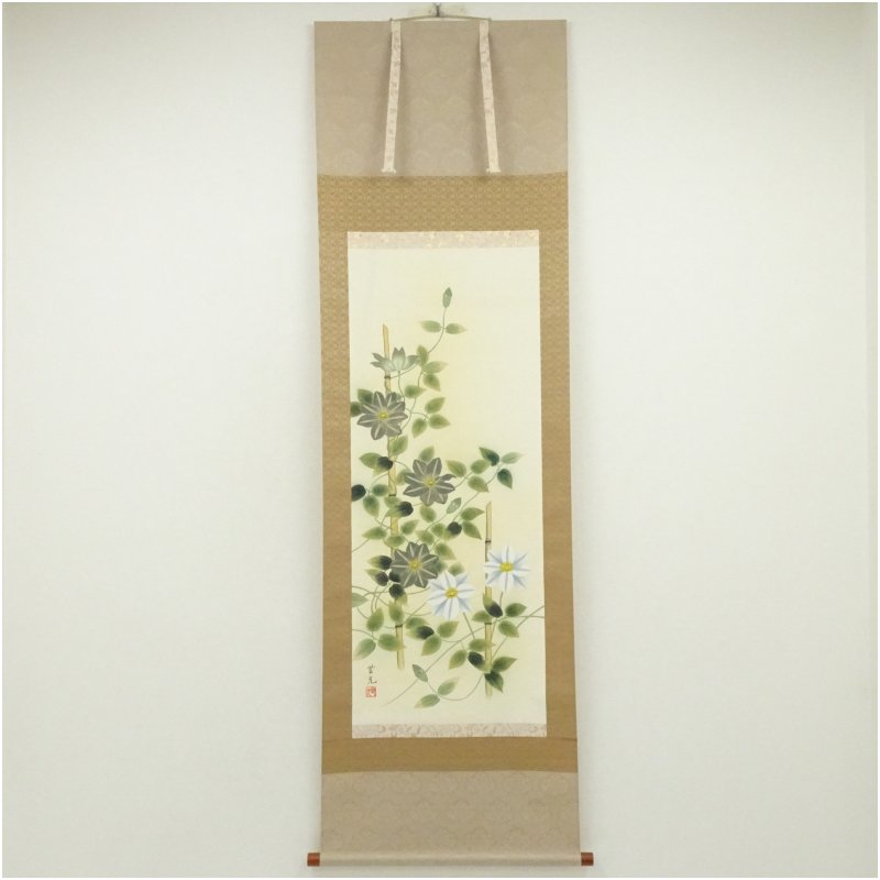 芸元筆 鉄仙花 肉筆絹本掛軸(共箱) [01-250826c-033a]