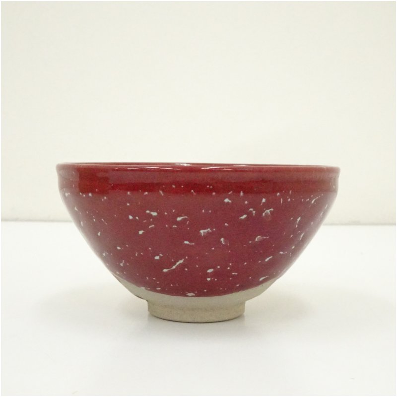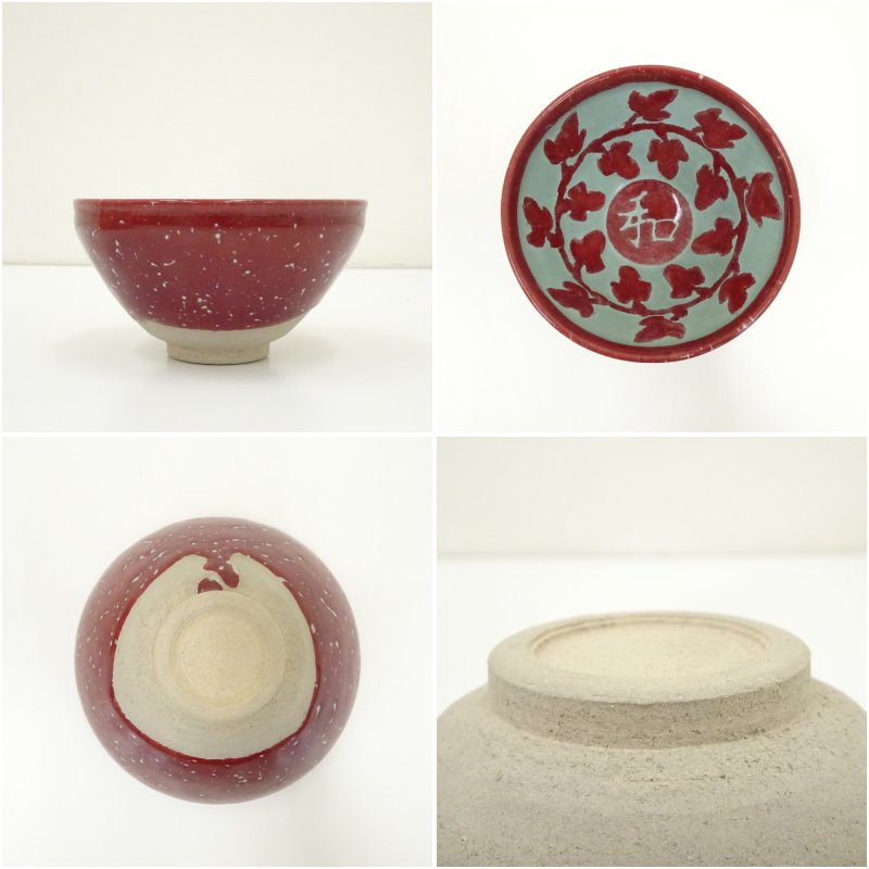 柴田厚志造 辰砂紅彩草文和の字茶碗(共箱) [09-250826c-049a]